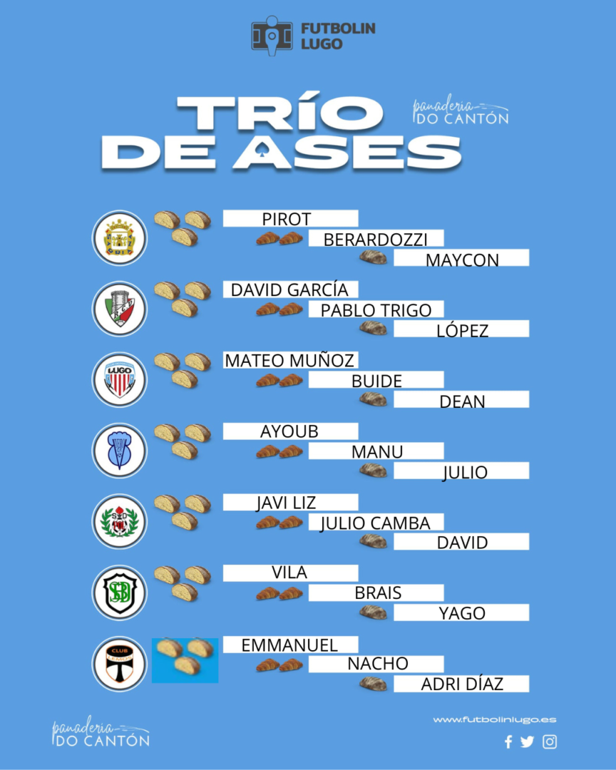 Poucas veces o Trío de Ases o Cantón viron como un equipo, o Lugo B neste caso, xiraba completamente o guión de toda a competición. Os de Dani Galán derrotaron a todo un Compostela que xa está igualado a puntos co Arosa na Terceira. Outros dous que deron un golpe sobre a mesa foron o Lemos e o Pol tumbando a dous dos favoritos das súas ligas. Ademais, Racing Villalbés e Sarriana conseguiron un bon punto e os dous da Mariña caeron derrotados.