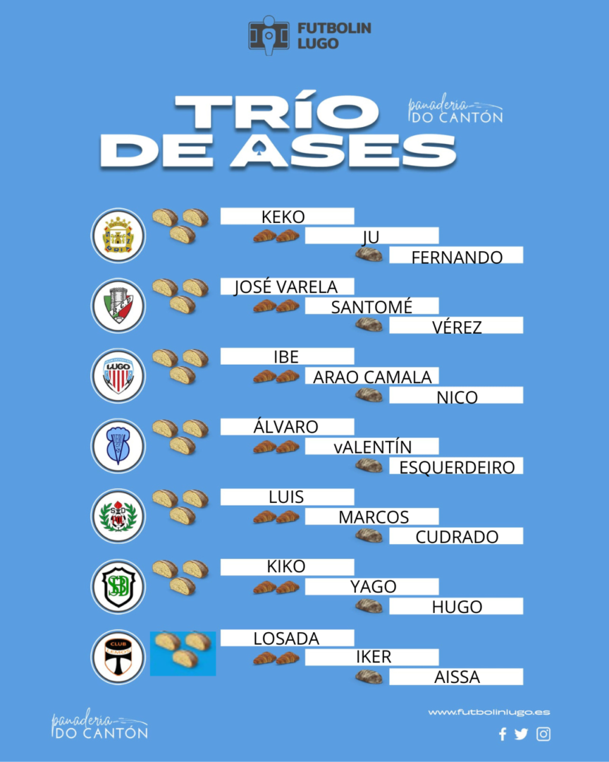 O Trío de Ases do Cantón só deixou unha vitoria nesta xornada. Foi a do Lemos, que conseguiu vencer por 0-2 ao Choco cun penalti parado de Pablo Losada incluído. O gran partido foi o derbi provincial da Terceira, que rematou en táboas entre Lugo B e Racing Villalbés. Tamén empatou o Pol ante o Victoria, mentres que o outro equipo da súa liga, o Burela, caeu ante o Sigüeiro. Viveiro e Sarriana caeron ante os líderes da súa liga.