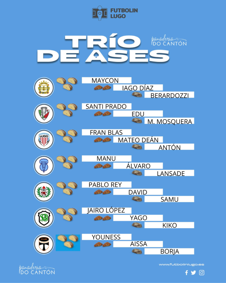 O Trío de Ases O Cantón deu unha xornada na que só o Lugo B acadou unha vitoria que lles permite manterse nunha loita pola promoción cunha lista infinita de candidatos. En canto os empates, hai diferencias de percepción entre o Racing Villalbés, o Viveiro, a Sarriana e o Lemos. Por último, a Preferente Norte non puido sumar ningún punto, xa que o Burela e o Pol, que cortou a súa xeira de vitorias, perderon.