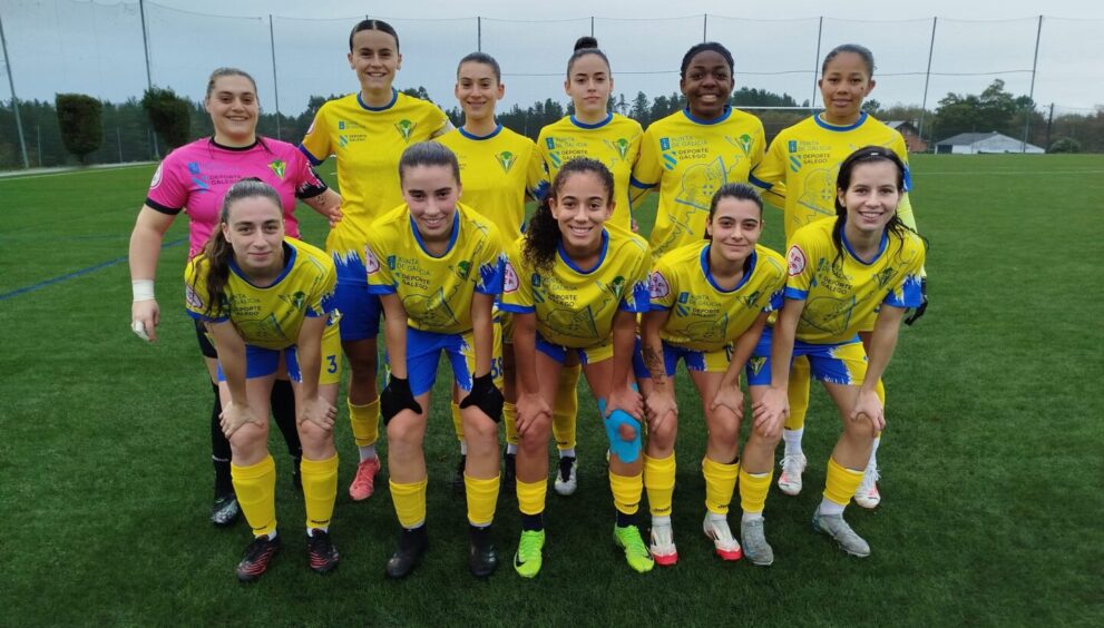 Xogadoras do San Roque antes do partido ante a Comercial. Foto cedida